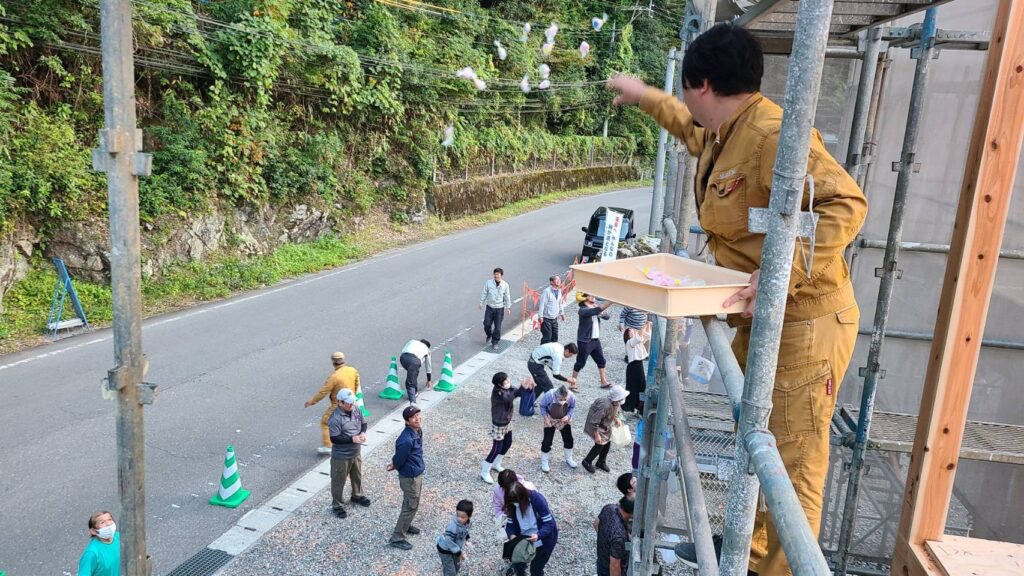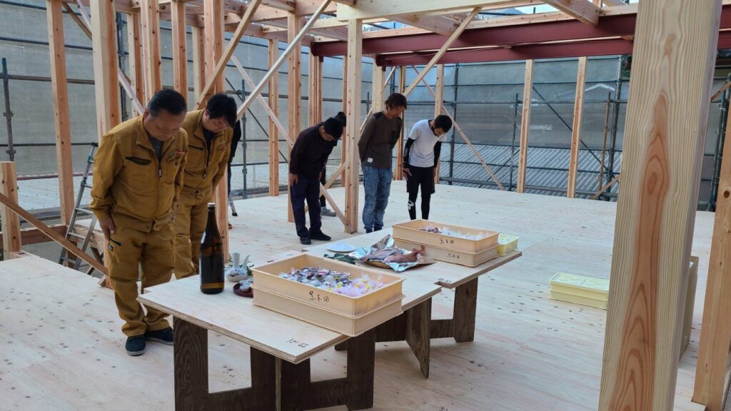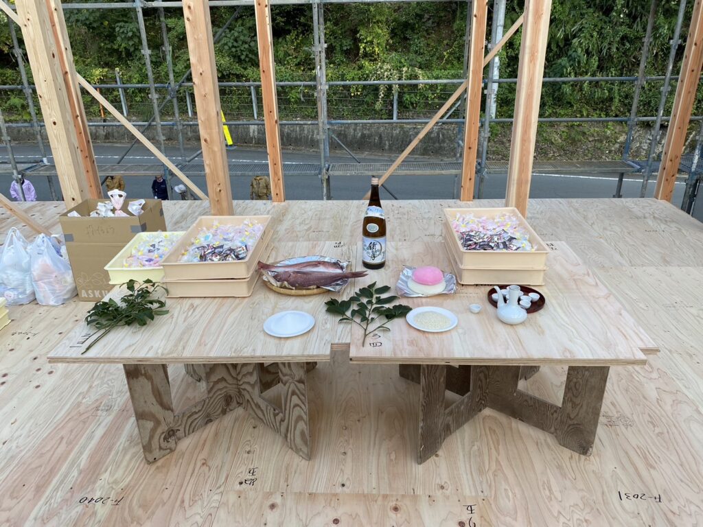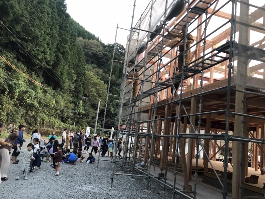 2023/10/12(木)無事に事務所の上棟式が終わりました!!当日は、たくさんの地域の方、子供たち、仕事関係の方々がいらっしゃってくださいました😊
