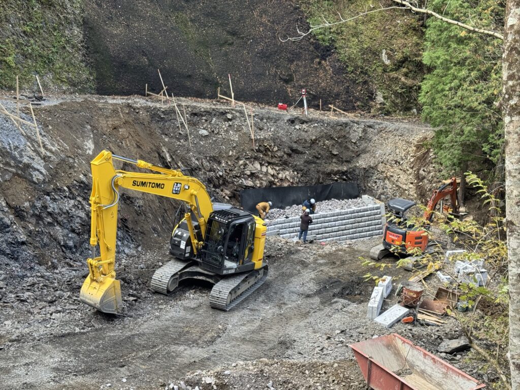 この現場は初めて行ってみたんですけど、現場ではアンカー式ブロック積みの作業をしていました!