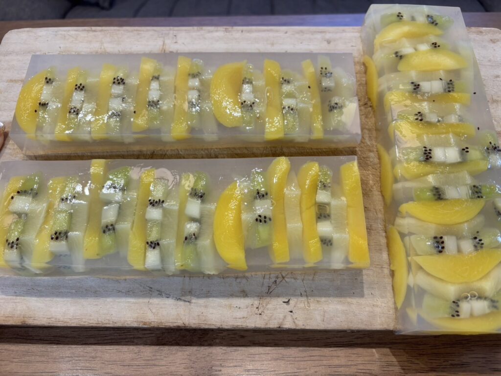 デザートは前日に母と妹が作ったフルーツ寒天でした🥝🍑🍍