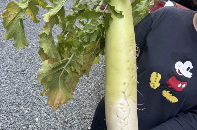 先日、村内に仕事に来られている建設会社のおじ様から大きい大根と白菜をいただきました😳‼️ 時々、色々な野菜や果物など持ってきてくれ...