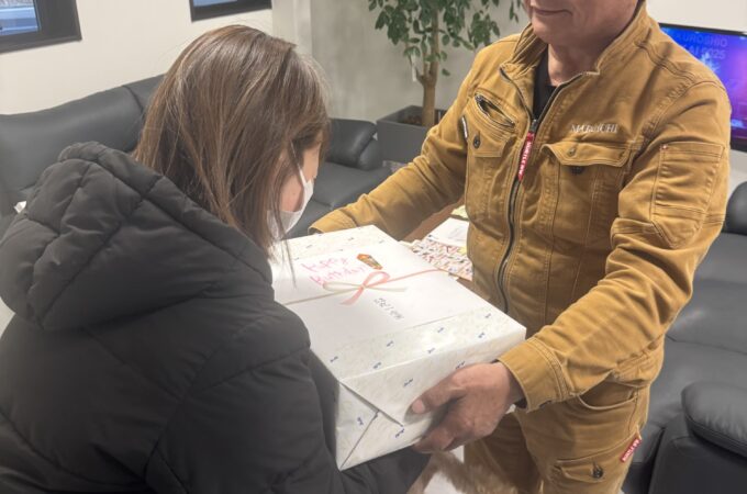 先日は事務員さんの誕生日でした🎂 誕生日おめでとうございました🙌✨ 社長から誕生日プレゼント贈呈🎁💙 これからも、会社のために頑張...